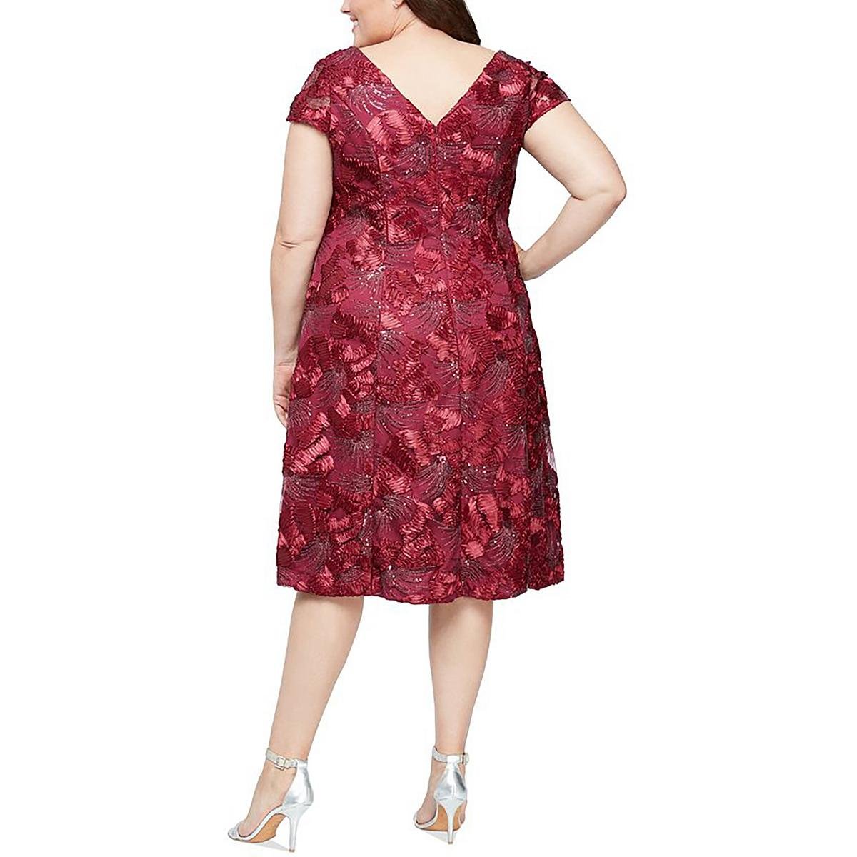 Alex Evenings Womens Plus Sequined Lace Midi Dress